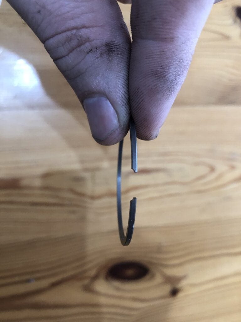 Pierścienie tłokowe najlepiej zdejmować gołą ręką, unosząc palcem część pierścienia w zamku i wykręcając go z tłoka. Nie używaj ostrych przedmiotów, aby nie uszkodzić rowków w tłoku! Uwaga, pierścienie tłokowe są bardzo delikatne, podczas mojej pierwszej wymiany złamałem jeden lub dwa pierścienie tłokowe. Dlatego należy bardzo uważać, aby w żaden sposób nie rozciągnąć pierścieni tłokowych i podchodzić do nich ostrożnie.